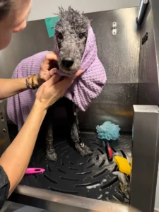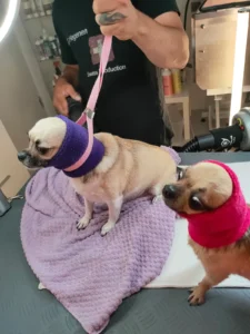 Ihr Liebling wird mit einem individuellen Shampoo, das auf die Haut und das Fell Ihres Vierbeiners abgestimmt ist, gebadet. Anschließend wird er mit einem starken Föhn (Blower) getrocknet und danach glatt geföhnt.
