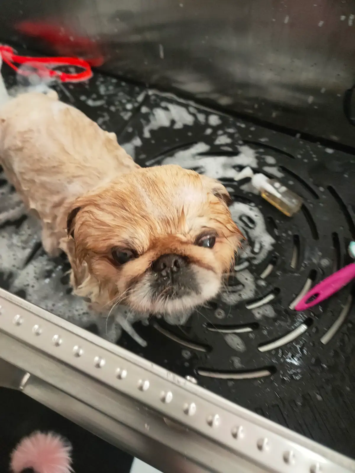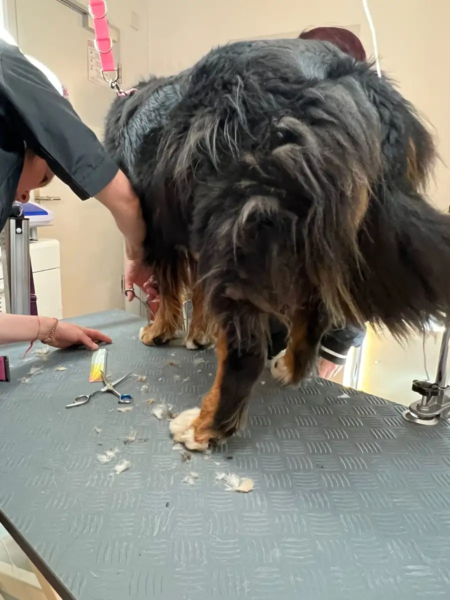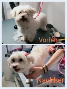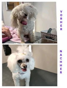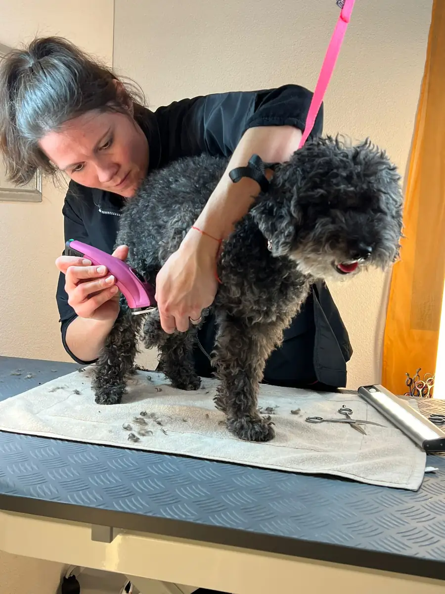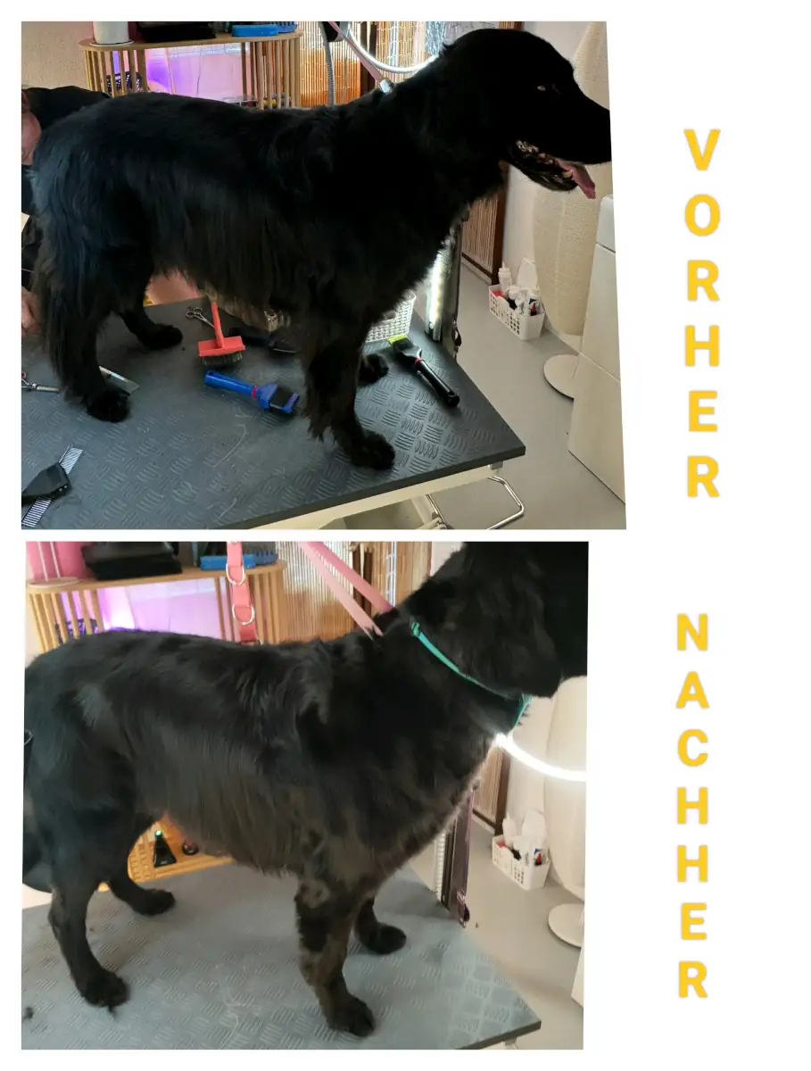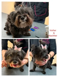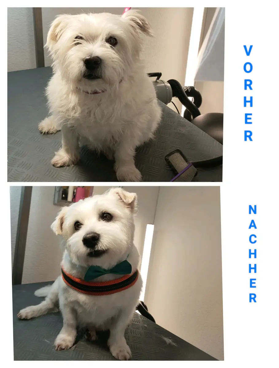 Wählen Sie zwischen einer Rundum-Vollpflege mit Baden, Bürsten und Schneiden oder einem schnellen Schnitt (Kopf, Rute, Pfote) und Bad für einen frischen Look.